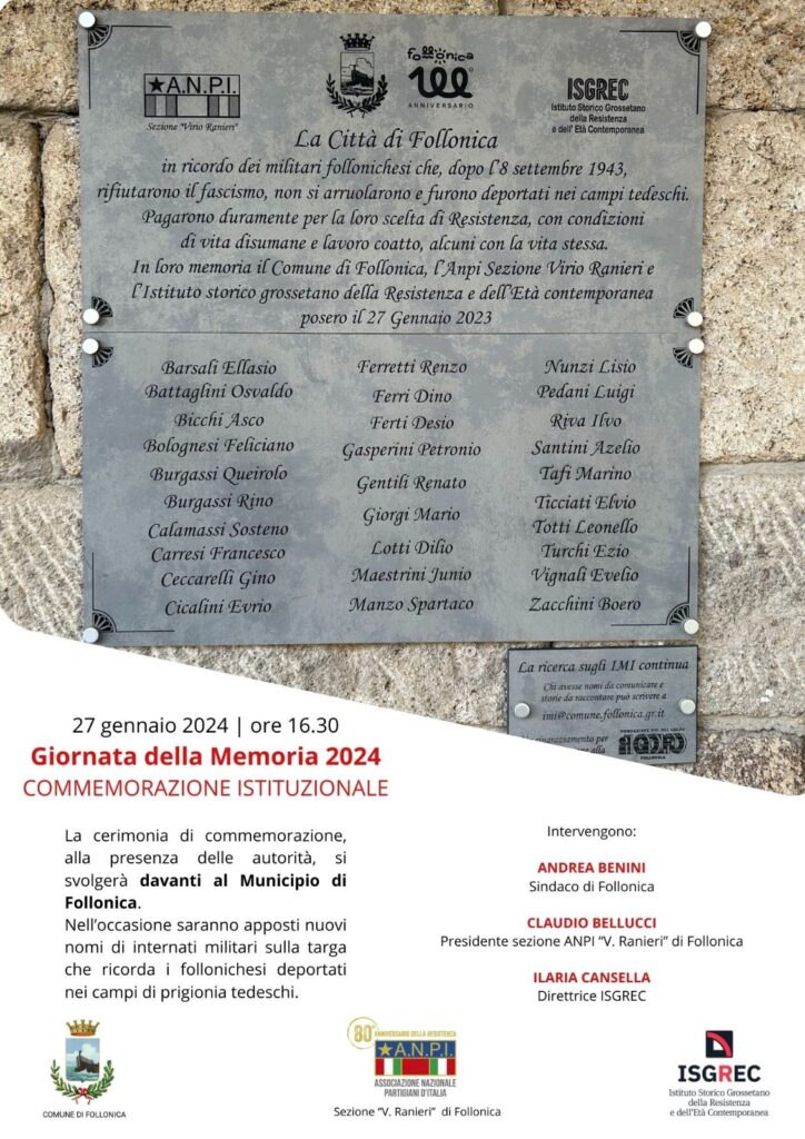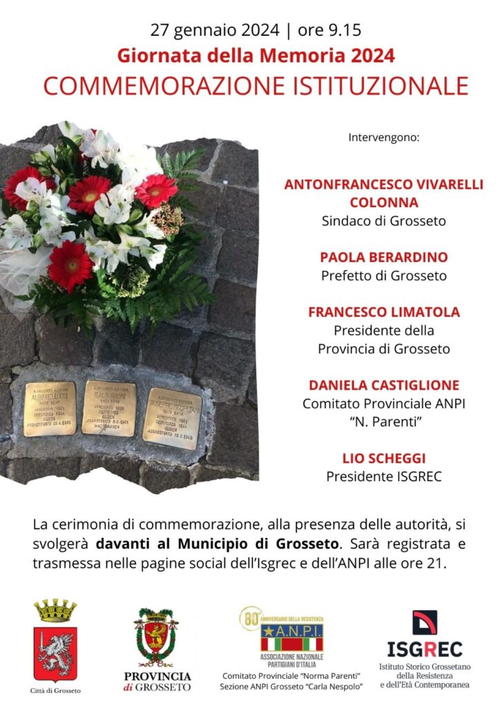 Giornata delle Memoria 2024: commemorazioni istituzionali a Grosseto e Follonica Isgrec 26/01/2024 Giornata delle Memoria 2024: commemorazioni istituzionali a Grosseto e Follonica2024-01-26T13:16:39+01:00 Related Posts Nuovo progetto didattico – L’Officina del racconto. Incontri tra letteratura e storia 18 settembre, “All’ombra dei Tigrotti di Maremma” a Maiano Lavacchio “Tempo di scuola 2026”, il piano dell’offerta formativa per insegnanti e studenti per l’a.s. 2025-2026